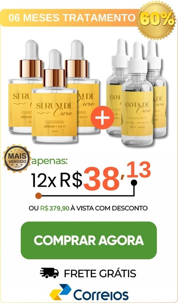 O kit mais recomendado e vendido é o de 6 meses, uma vez que, apesar de se obter resultados imediatos com o uso do Sérum de Ouro + Gotas de Ouro, os melhores benefícios são obtidos com o uso contínuo do Tratamento.